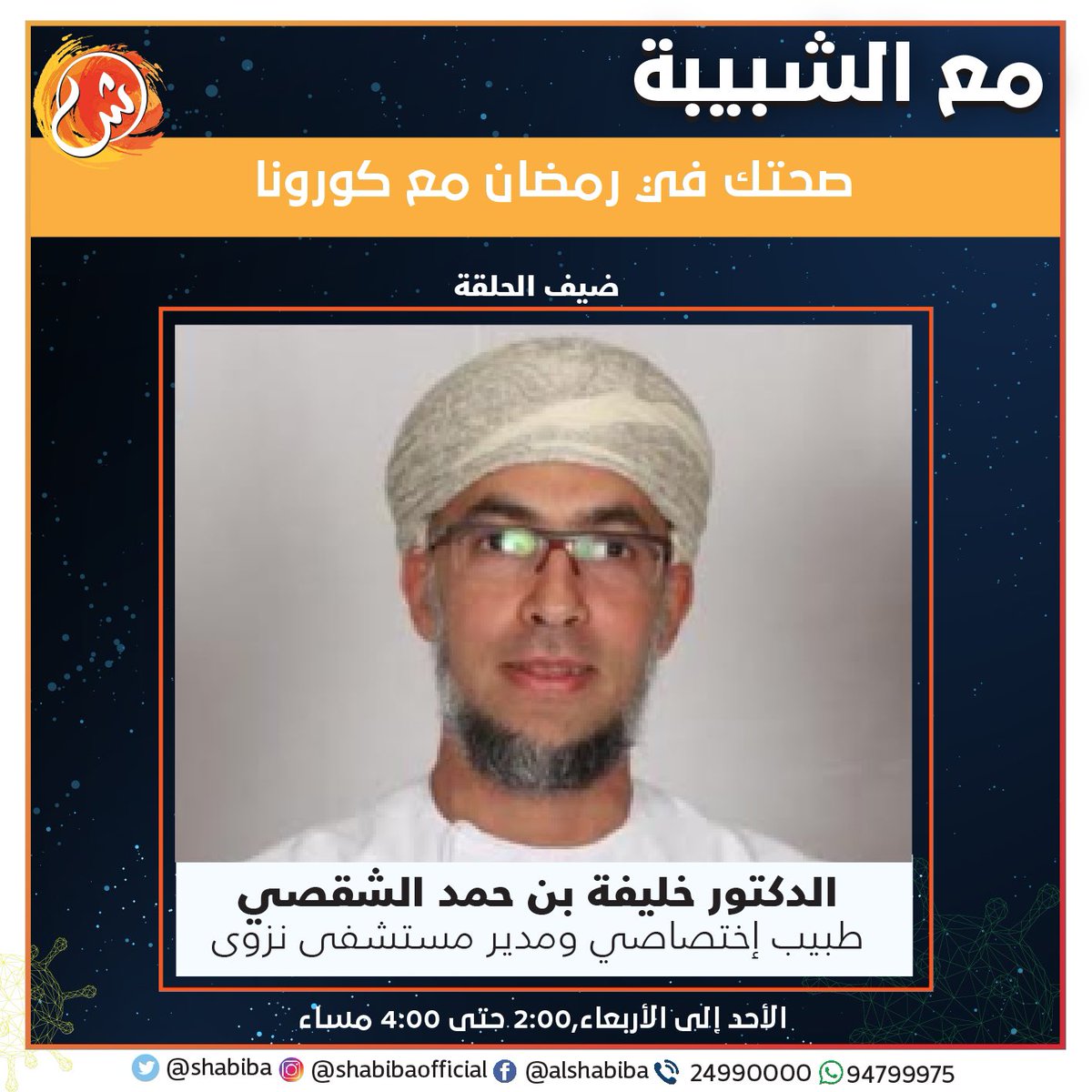 الشبيبة On Twitter الشبيبة كيف تستعد لـ رمضان مع كورونا مع ضيفنا د جميل بن خلفان الغافري واعظ بدائرة الوعظ والإرشاد بـ Meraoman ومحاضر بكلية العلوم الشرعية رمضان كريم كوفيد 19 Https T Co P9vvr8xhes