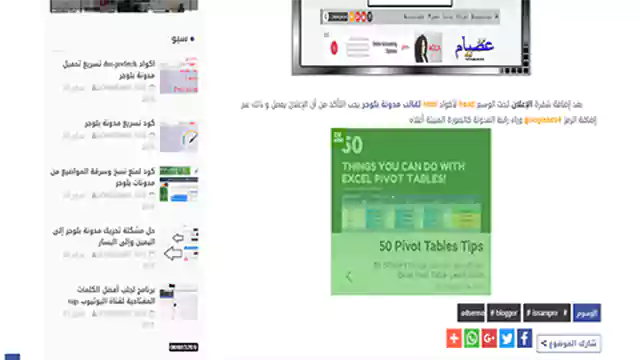 الدرس 86 طريقة تركيب اداة مشاركة المواضيع على صفحات الاجتماعية و واتساب على مدونة بلوجر