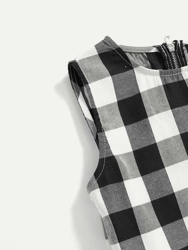 فساتين بنات سستة قماش قطن المربعات أبيض وأسود غير الرسمي شي إن