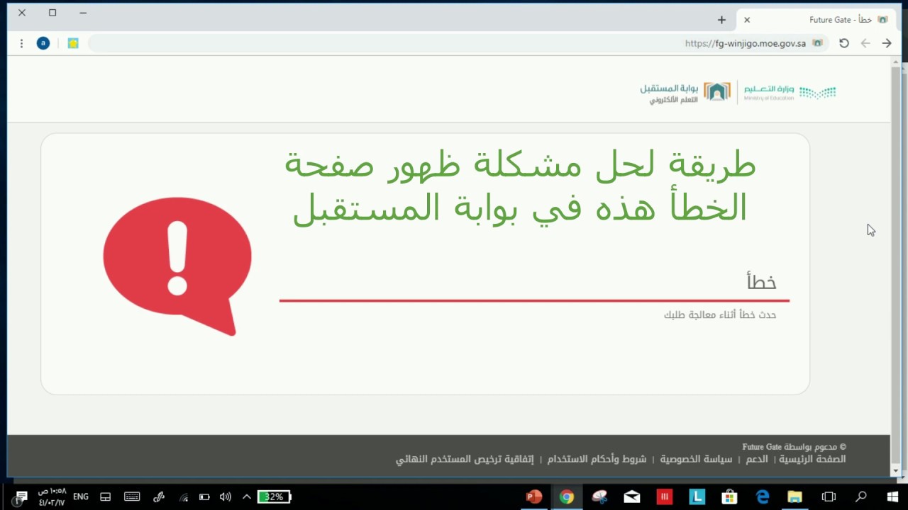 بوابة المستقبل حل مشكلة ظهور صفحة الخطأ Youtube
