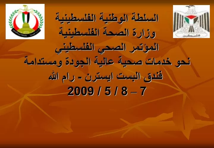 Ppt السلطة الوطنية الفلسطينية وزارة الصحة الفلسطينية المؤتمر الصحي الفلسطيني نحو خدمات صحية عالية الجودة ومستدامة فندق البس Powerpoint Presentation Id 618740