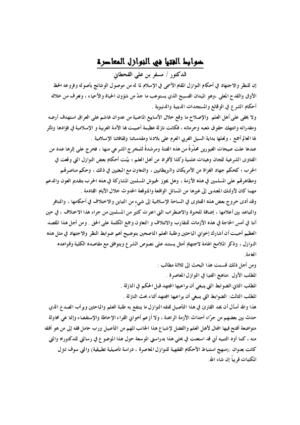 Pdf ضوابط الفتيا في النوازل المعاصرة Pdf Nay Nazahah Academia Edu