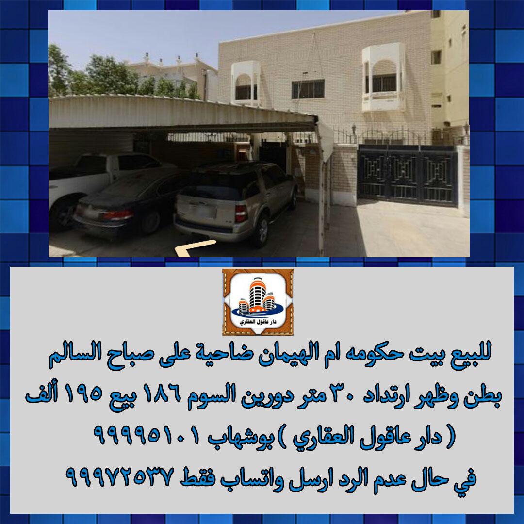 للبيع بيت حكومه ام الهيمان علي صباح السالم 300 متر بطن وظهر مزاد الكويت