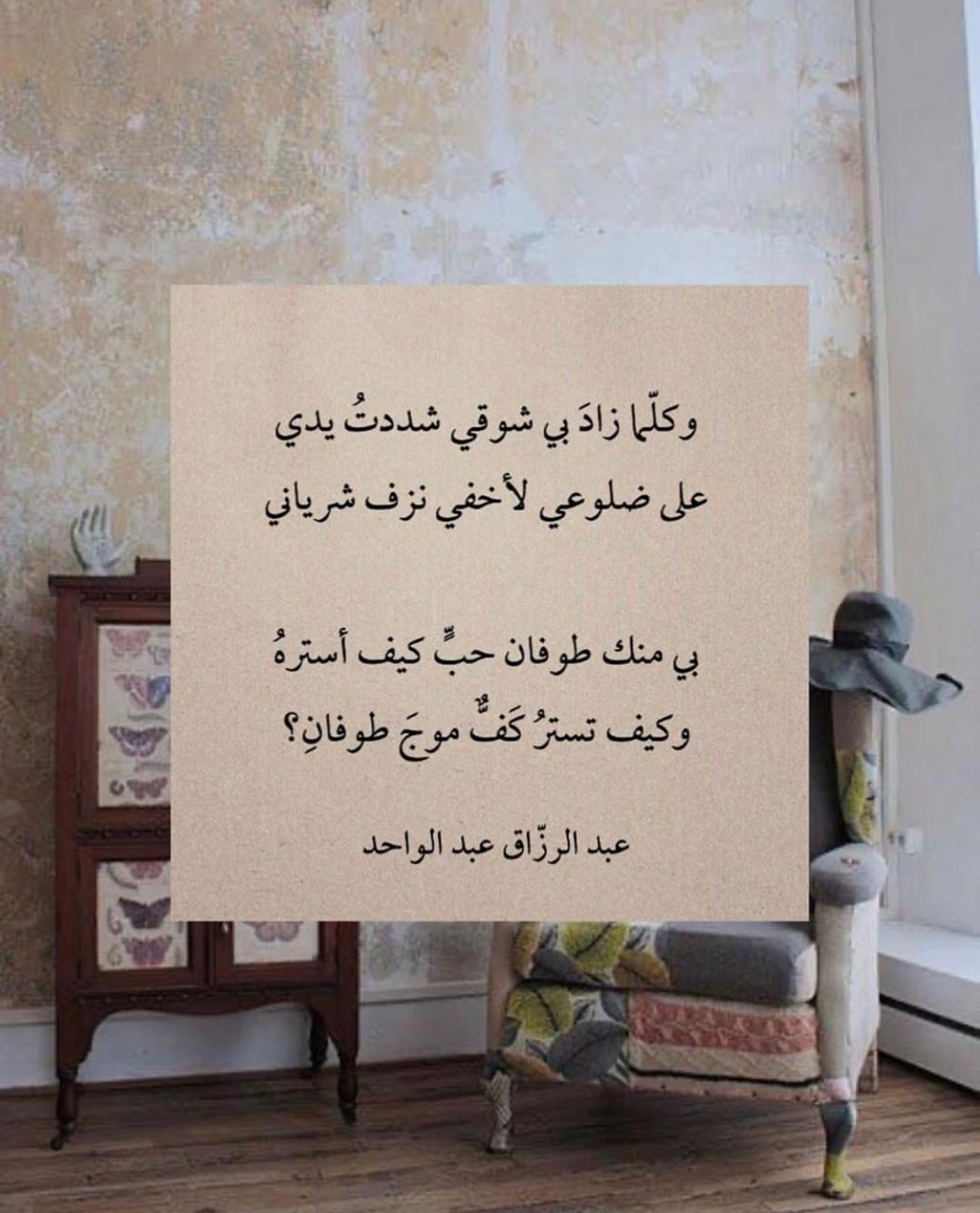 أحلام Ar Twitter و كـلما زاد بي شـوقي شددت يدي على ضلوعي لأخفي نزف ش رياني بي منك طوفان حـب كيف أستره وكيـف تستر كـف موج طوفان عبدالرزاق عبدالواحد يخبرني المساء مجمع الأدب