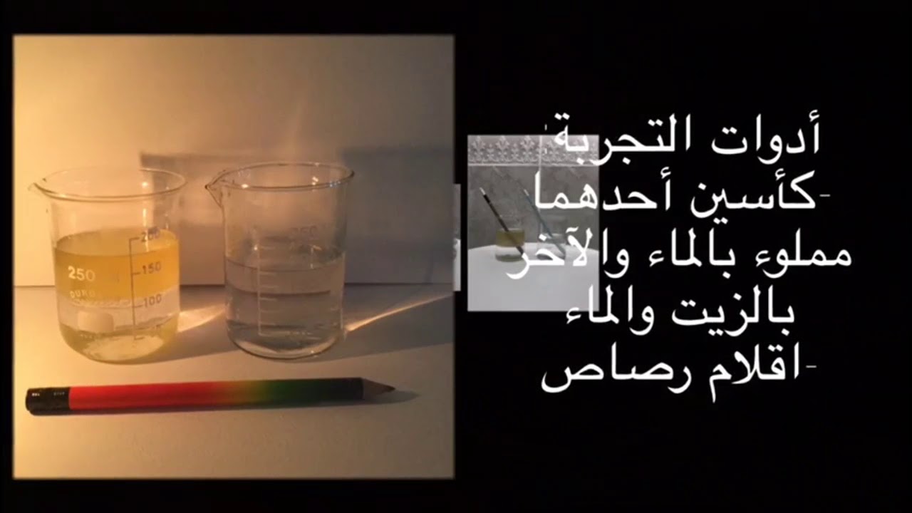 اسم التجربة كيف يبدوا قلم الرصاص موضوع في سائل عند النظر اليه جانبيا Youtube
