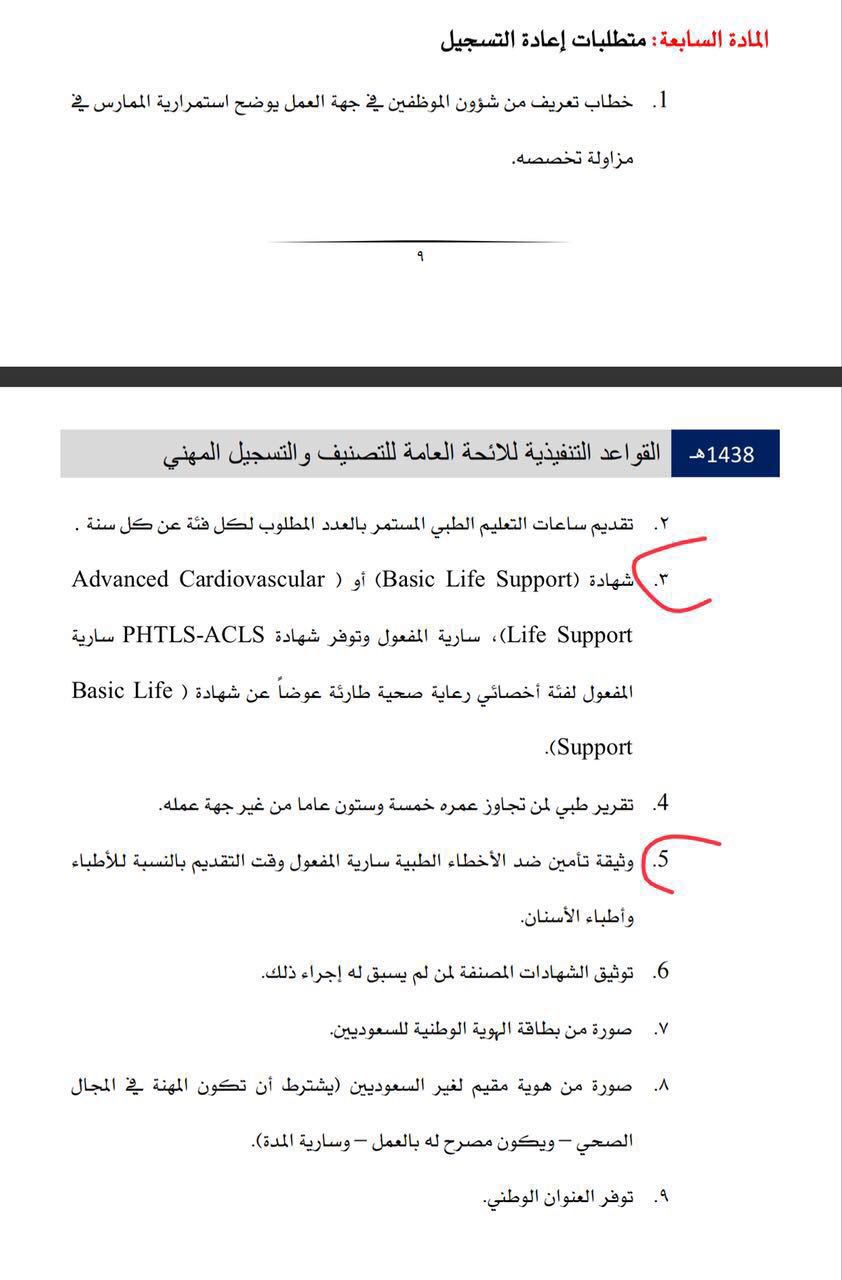 دورات وساعات معتمدة V Twitter عاجل ابتداء من 16 مايو 2018 إلغاء وثيقة التامين للأخطاء الطبية وكذلك شهادة وبطاقة ال Bls وأصبحت غير مطلوبة في متطلبات اصدار بطاقة وشهادة التصنيف