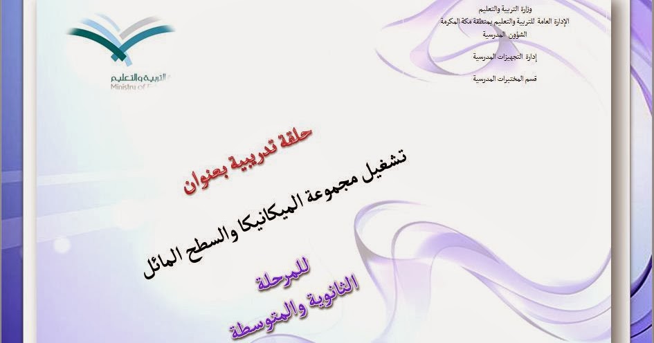 ملتقى المختبرات حلقة تدريبيه بعنوان تشغيل مجموعة الميكانيكا والسطح المائل