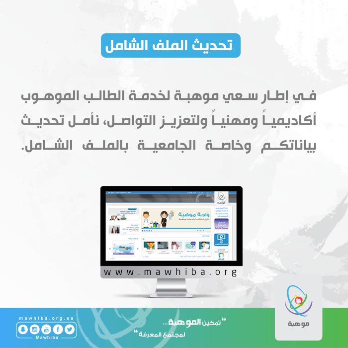موهبة On Twitter نأمل منكم تحديث بياناتكم في الملف الشامل عبر الرابط Https T Co M6h8a8j2hb موهبة