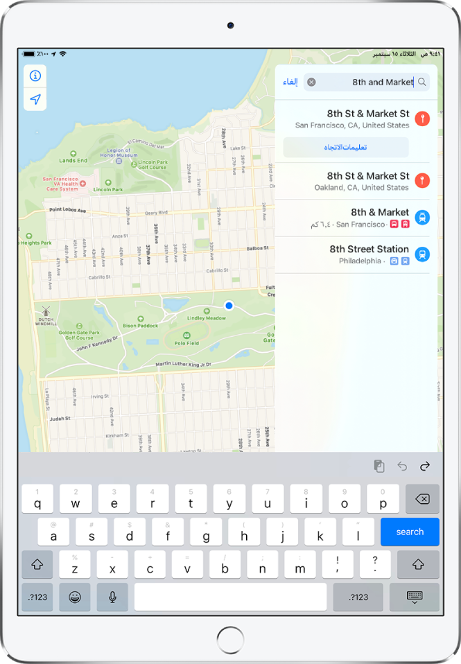 البحث عن أماكن في تطبيق الخرائط على الـ Ipad الدعم Apple