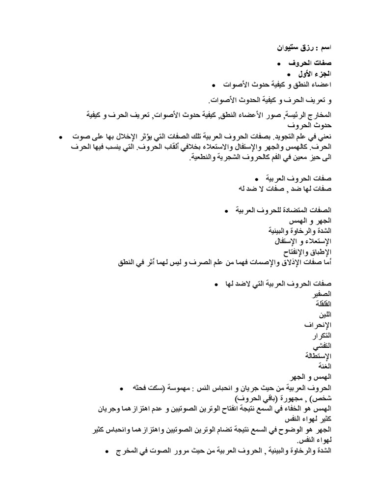 التجويد صفات الحروف