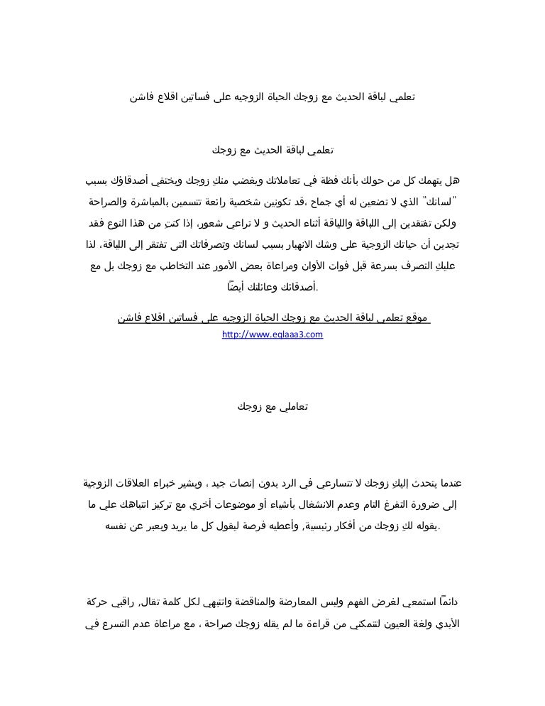 تعلمي لباقة الحديث مع زوجك الحياة الزوجيه على فساتين اقلاع فاشن