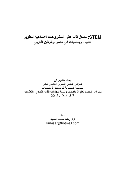 Doc Tem مدخل تكاملي حديث متعدد التخصصات للتميز الدراسي ومهارات القرن الحادى والعشرين Mohamed Adel Sakr Academia Edu