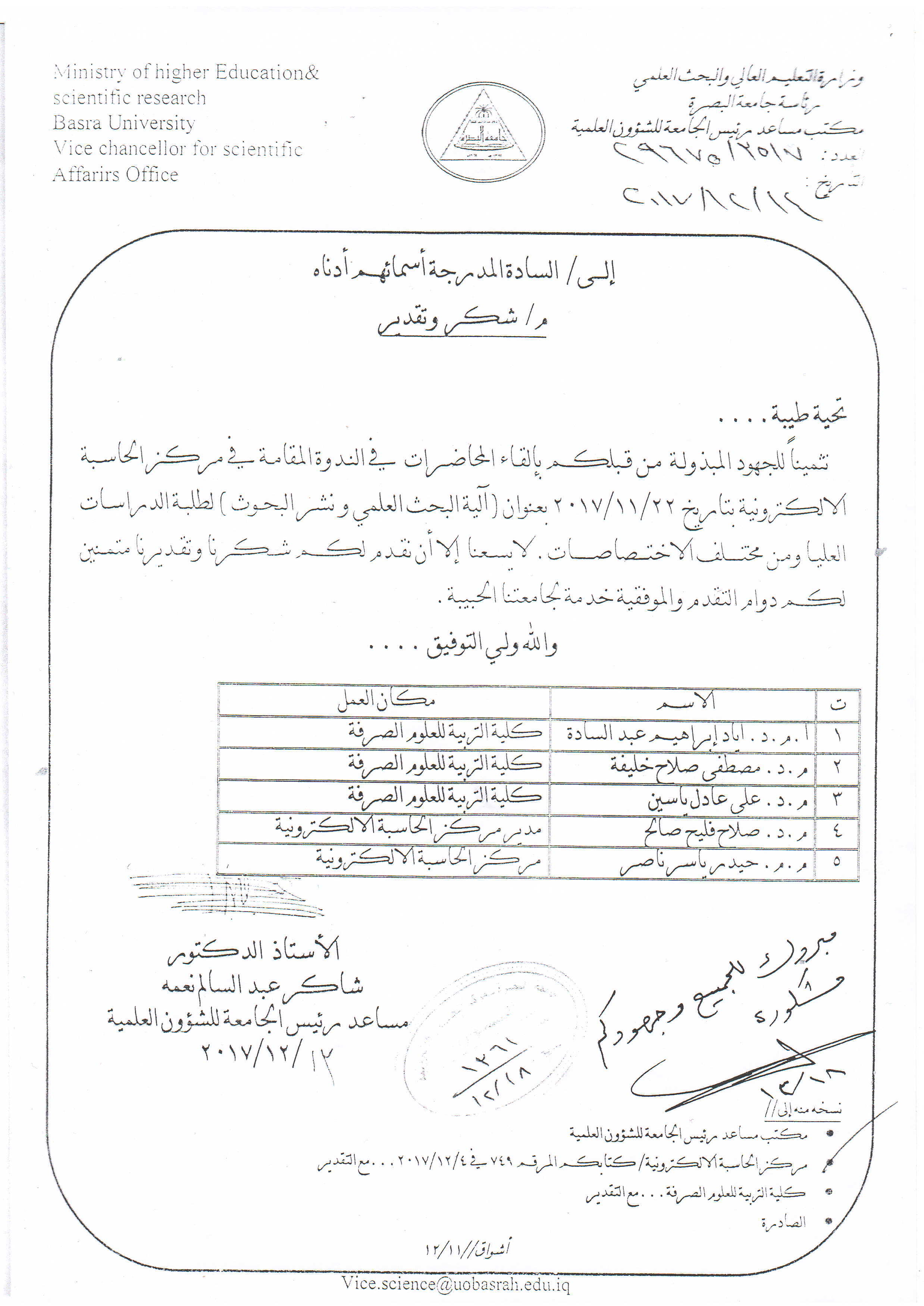 التشكرات والتهاني 2017 مركز الحاسبة الالكترونية