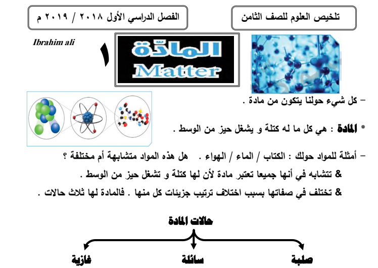 ملخص علوم الوحدة الاولى للصف الثامن اعداد ابراهيم علي مدرستي الكويتية