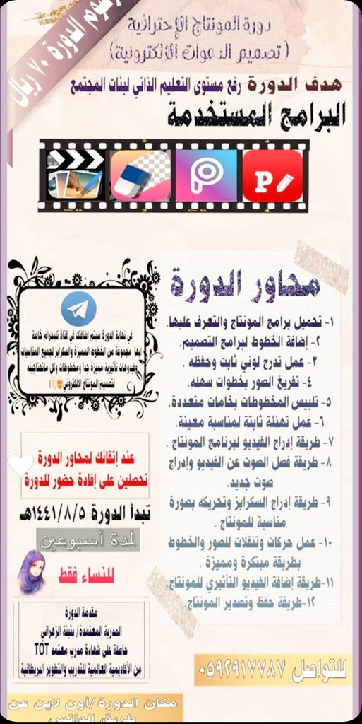 خالد مساعد الزهراني On Twitter دورة المونتاج الاحترافية تصميم الدعوات الإلكترونية للنساء فقط لمدة أسبوعين أون لاين و واتس تقدمها المدربة المعتمدة بثينة الزهراني حاصلة على شهادة مدرب معتمد من