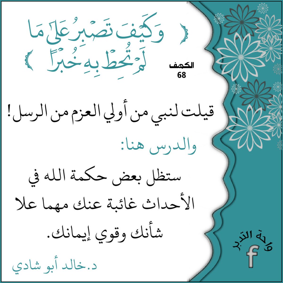 68 وكيف تصبر على ما لم تحط به خبرا تفسير سورة الكهف Facebook