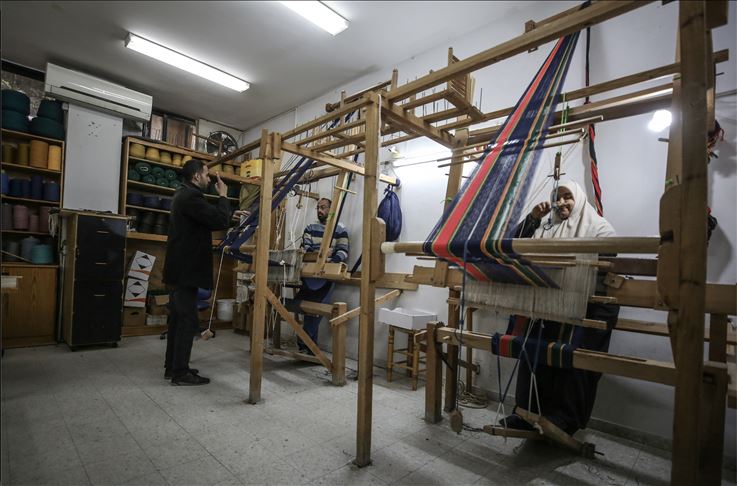 بعيدا عن ضجيج النول صم غزة يستمتعون بصناعة الب سط