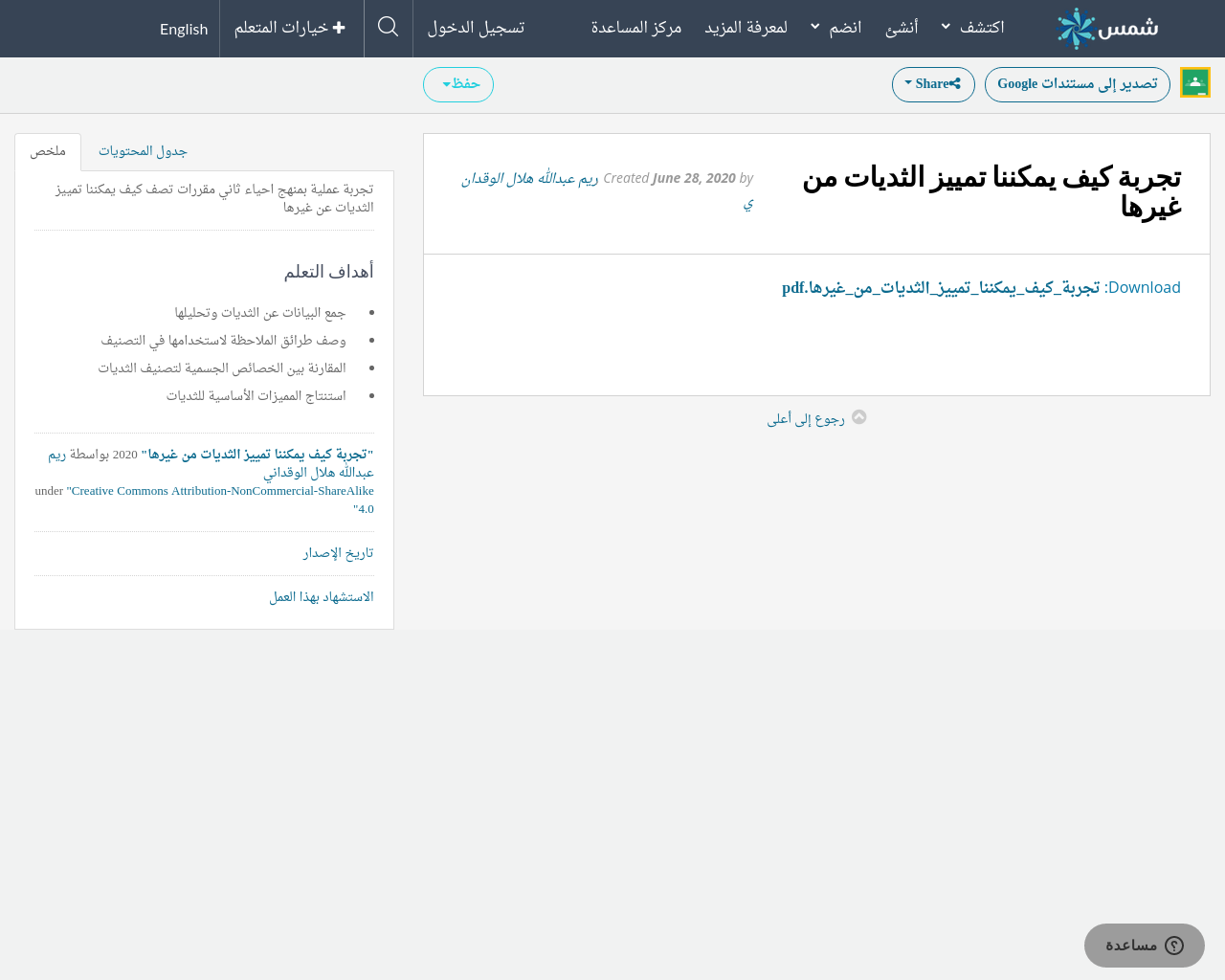 تجربة كيف يمكننا تمييز الثديات من غيرها Shms Saudi Oer Network