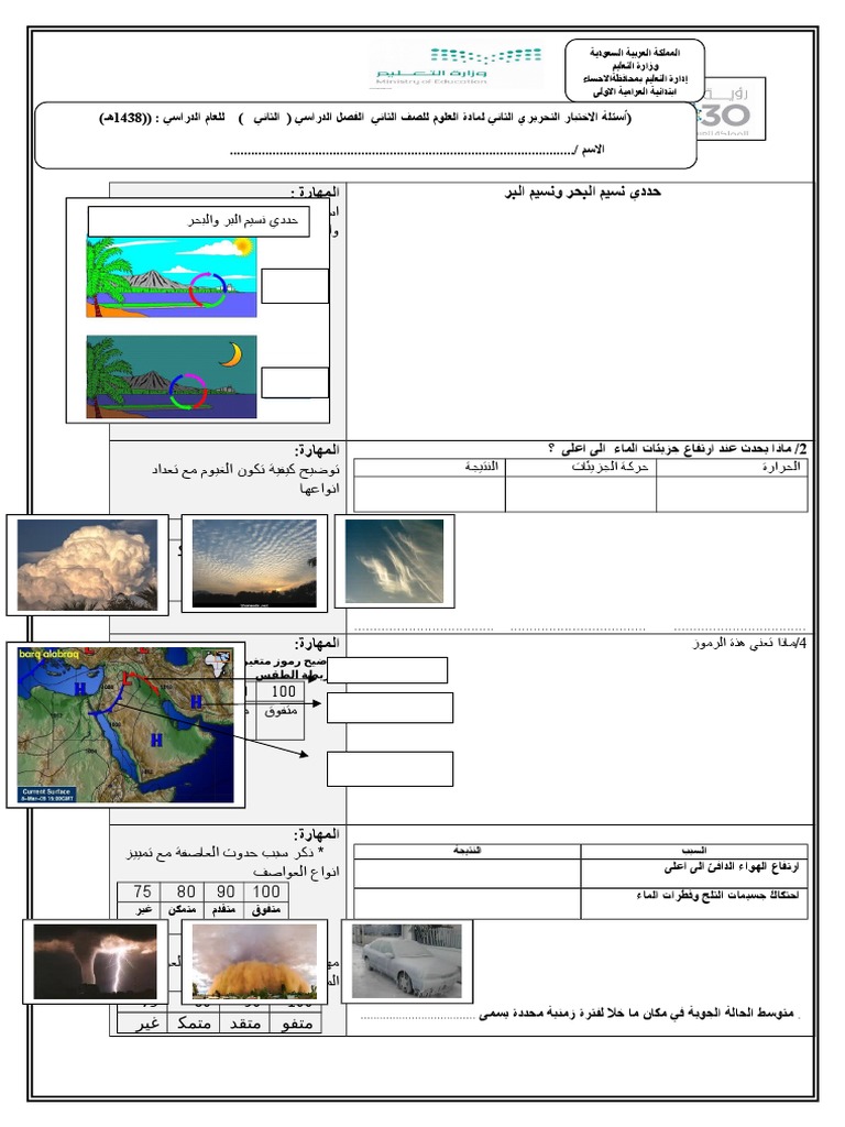 اوراق عمل علوم للصف الخامس الفصل الثاني امتحانات و اختبارات