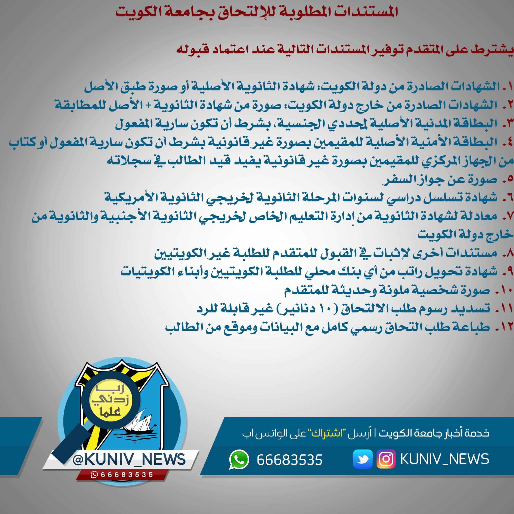 Kuniv News Pe Twitter المستندات المطلوبة لإعتماد القبول بجامعة الكويت