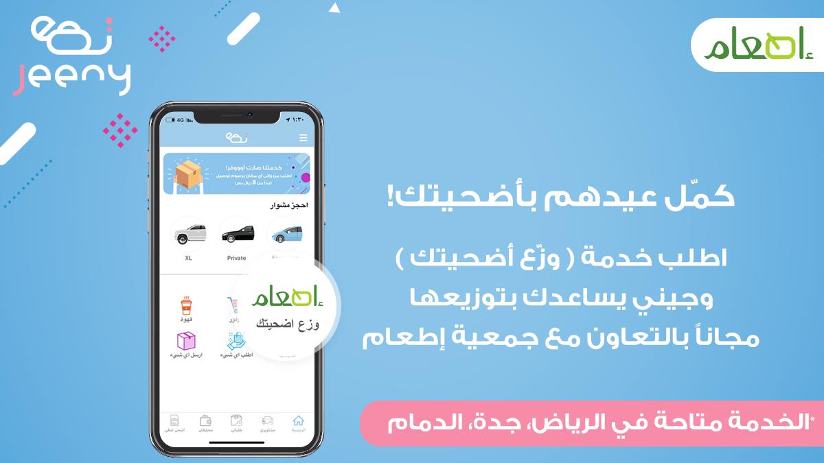 جيني السعودية على تويتر تم تجهيز وإيصال تبرعاتكم خلال أيام عيد الأضحى بنجاح ولله الحمد والشكر موصول لجمعية إطعام وموظفينها